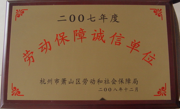被杭州市蕭山區(qū)勞動(dòng)和社會(huì)保障局評(píng)為2007年度勞動(dòng)保障誠(chéng)信單位。