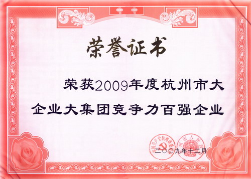 佳力被評為2009年度杭州市大企業(yè)大集團競爭力百強企業(yè)
