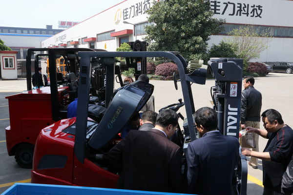 當(dāng)天上午,全體參會(huì)人員到公司實(shí)地考察了佳力科技公司,并對對5噸電動(dòng)防爆叉車、內(nèi)燃防爆叉車、交流電動(dòng)防爆叉車所展示的性能交口稱贊。下午,與會(huì)人員在金馬飯店會(huì)議室進(jìn)行交流。佳力科技董事長龔政堯首先介紹了佳力科技的大致情況以及發(fā)展方向。佳力科技防爆專用車輛陳總介紹了國內(nèi)外防爆叉車達(dá)到的技術(shù)水品,佳力防爆叉車的設(shè)計(jì)理念以及和國際接軌的防爆叉車主動(dòng)防護(hù)和被動(dòng)隔爆相結(jié)合的領(lǐng)先技術(shù)。