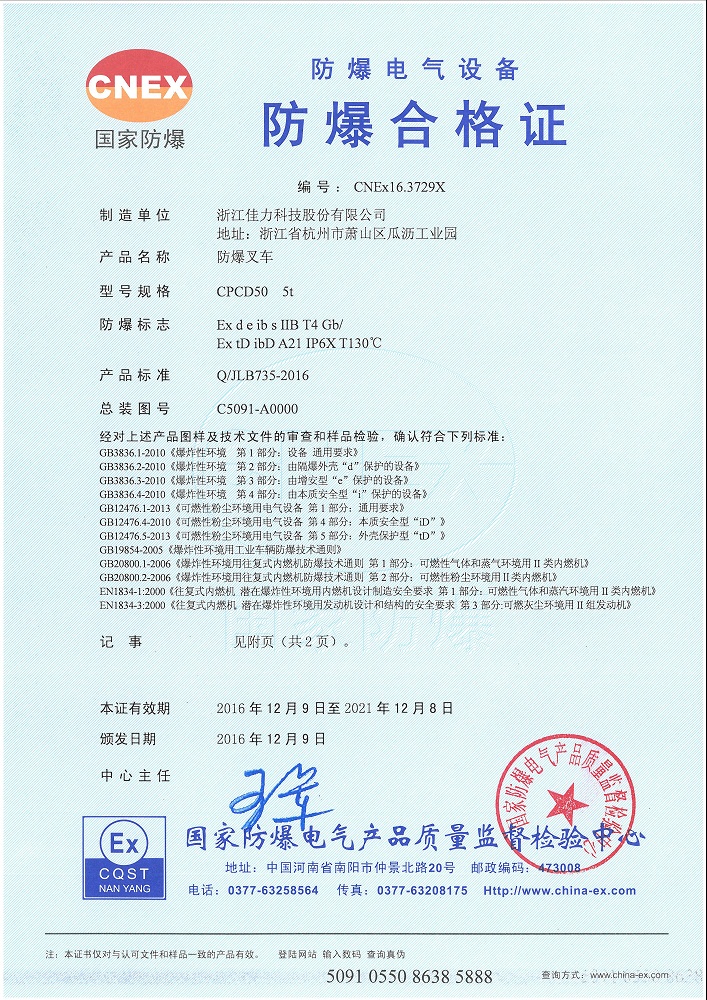 防爆證書>>詳細(xì)信息