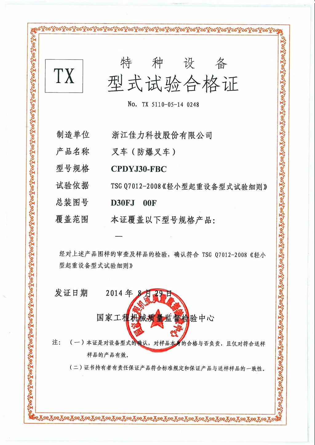 CPDYJ30-FBC型式試驗(yàn)合格證