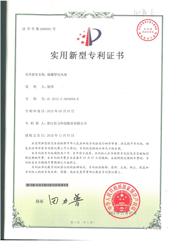 實(shí)用新型專(zhuān)利證書(shū)